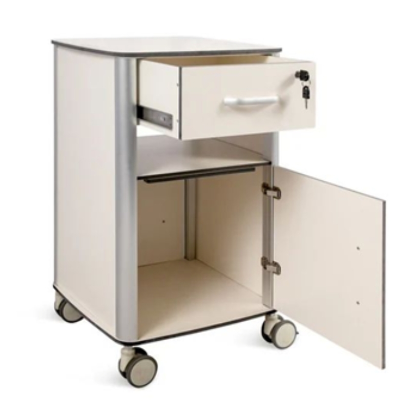 Compact and functional side tables for convenient patient access and storage.